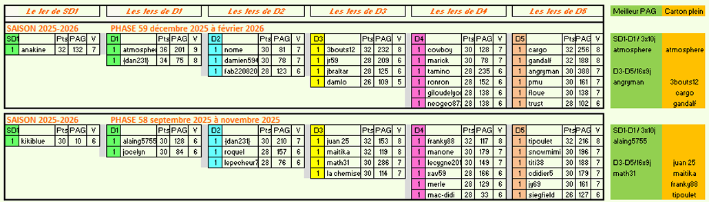 Les cartons pleins : ph3 -- / ph4 tallium (D3) - pam91(D4) - lepecheur72 (D5) / ph5 --